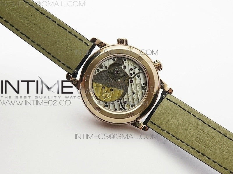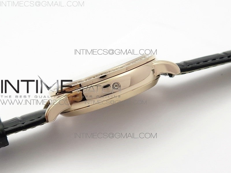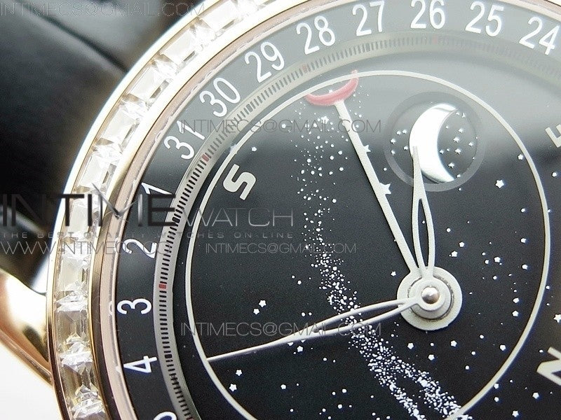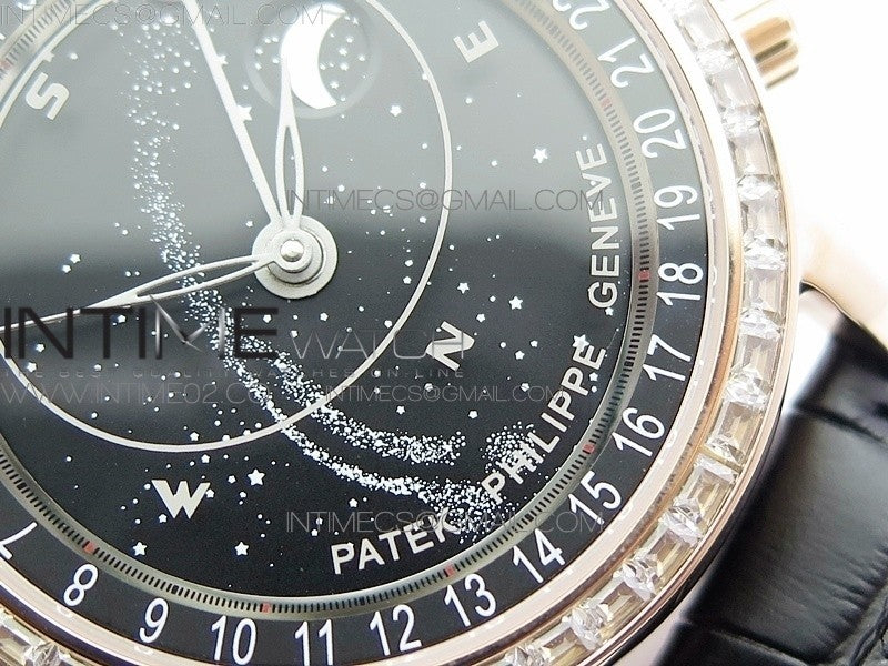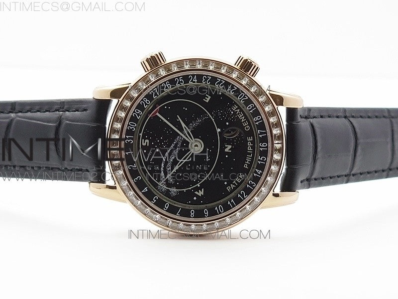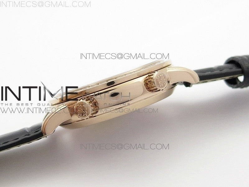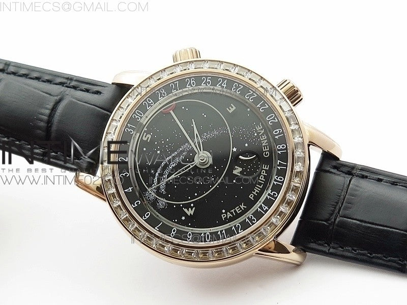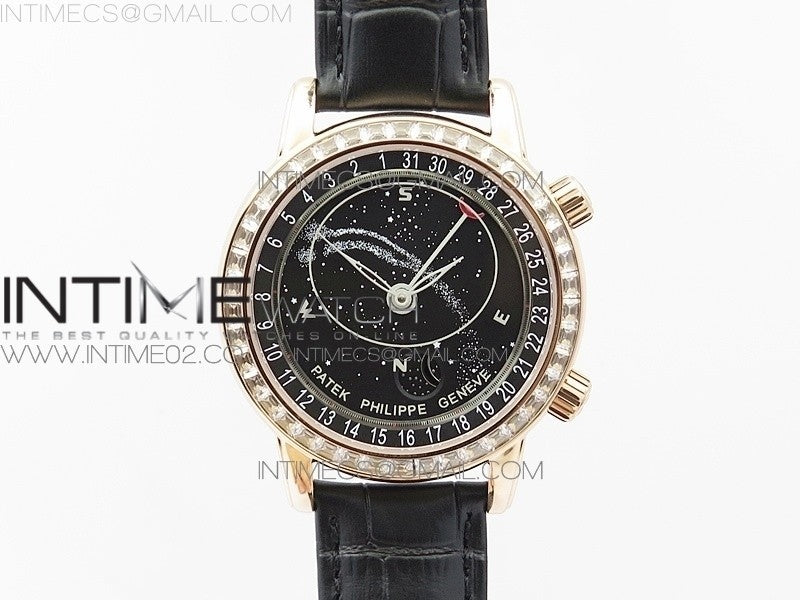 6104P Moon RG Black Dial Diamond Bezel on Black Leather Strap A240