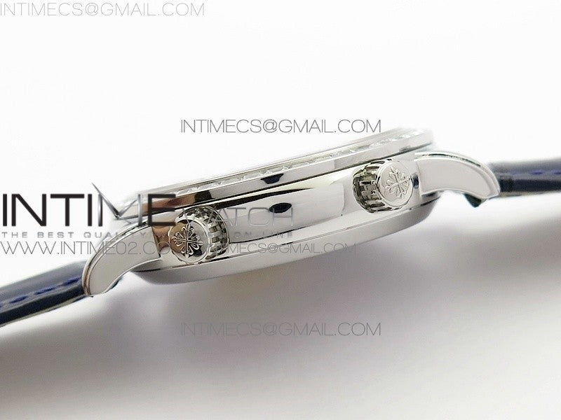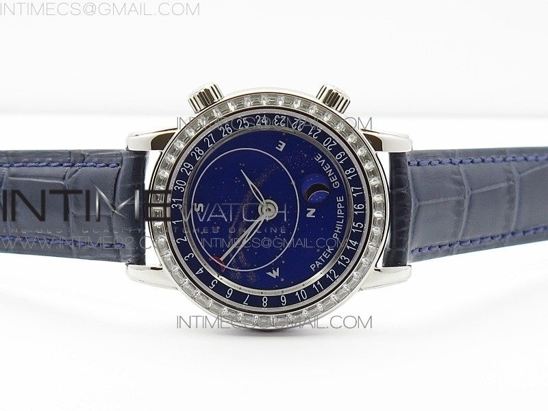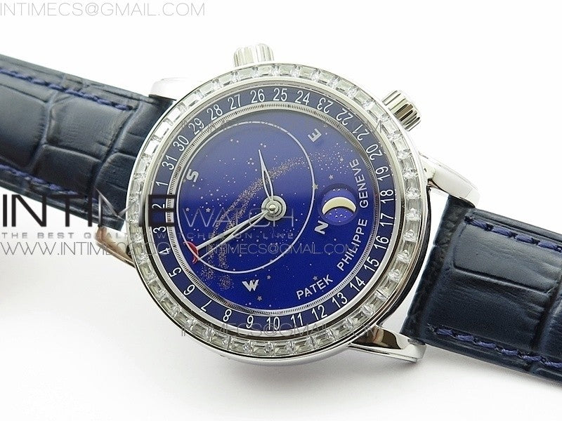 6104P Moon SS Blue Dial Diamond Bezel on Blue Leather Strap A240