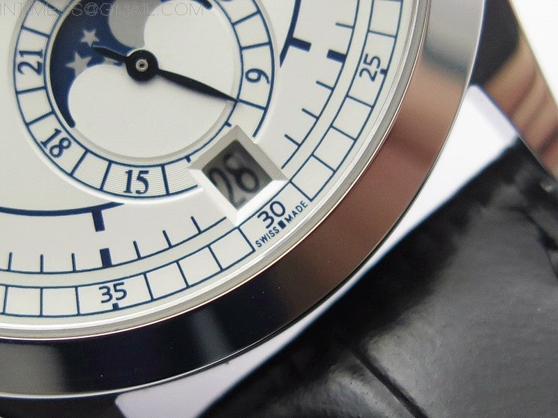 6104P Moon SS 3EF Best Edition Black Dial Blue T Diamond Bezel on Black Leather Strap A240