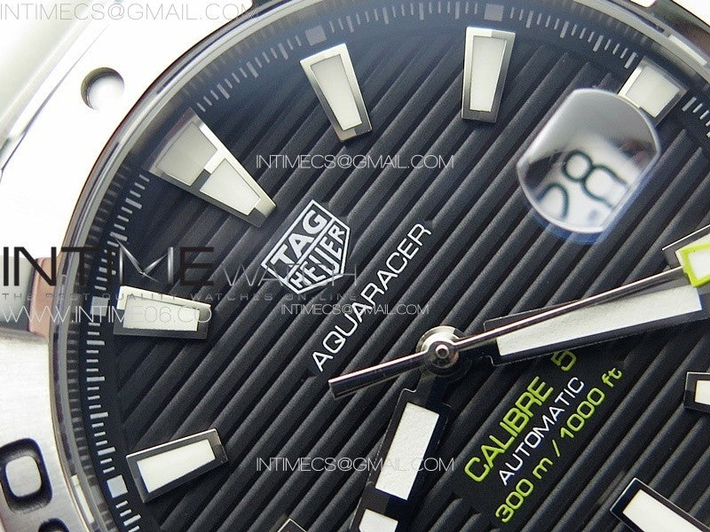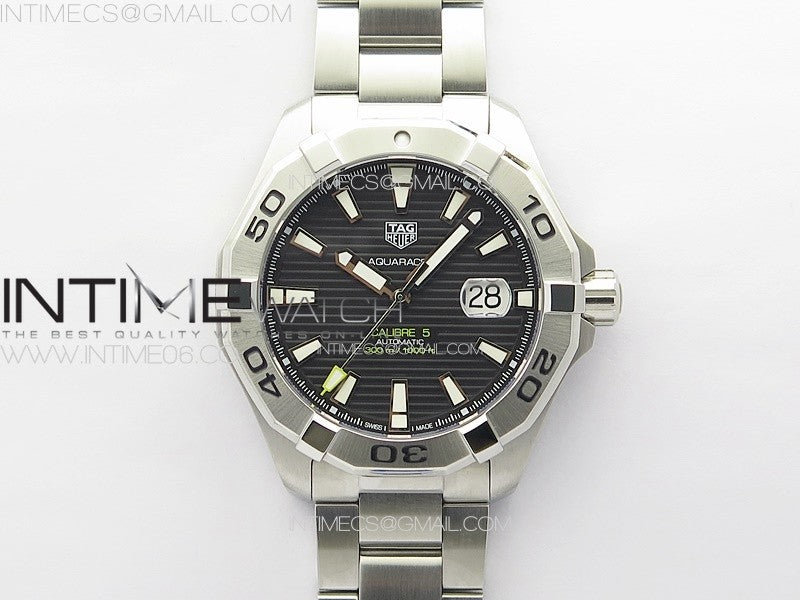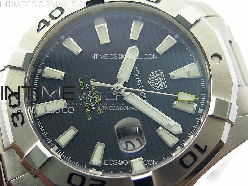 Aquaracer Calibre 5 44mm TARF 1:1 Best Edition Black Dial SS Bezel on SS Bracelet SW200