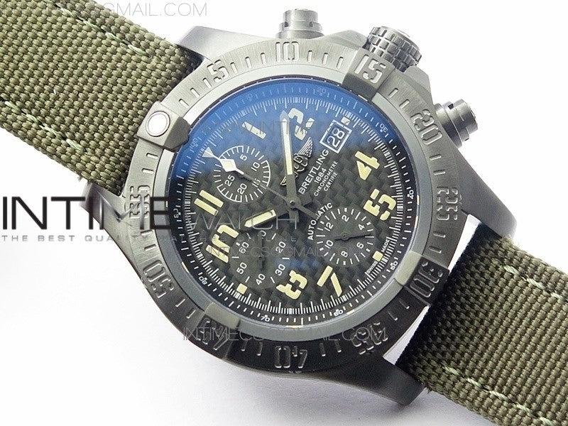 Avenger Bandit Titanium DLC B50 Best Edition Gray Carbon Dial on Green Nylon Strap A7750