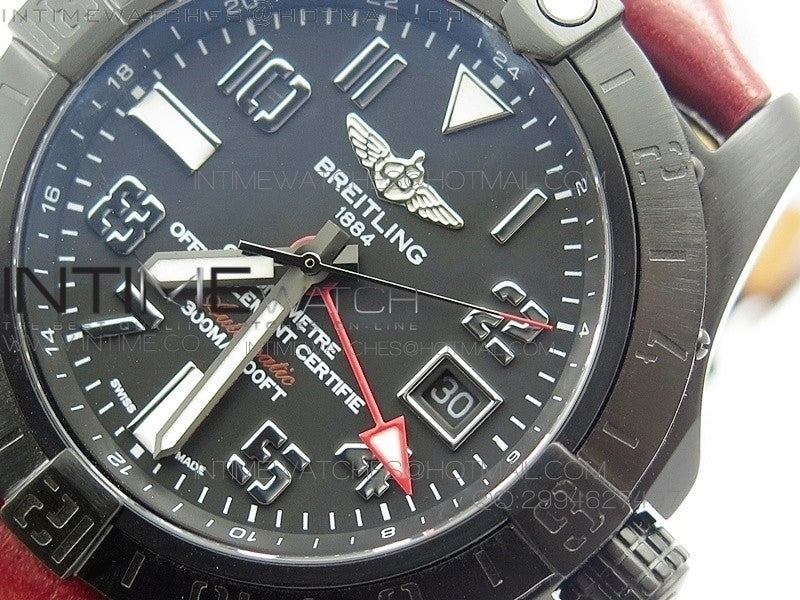 Avenger GMT DLC Black Numeral Marker Textured Dial on Leather strap A2836