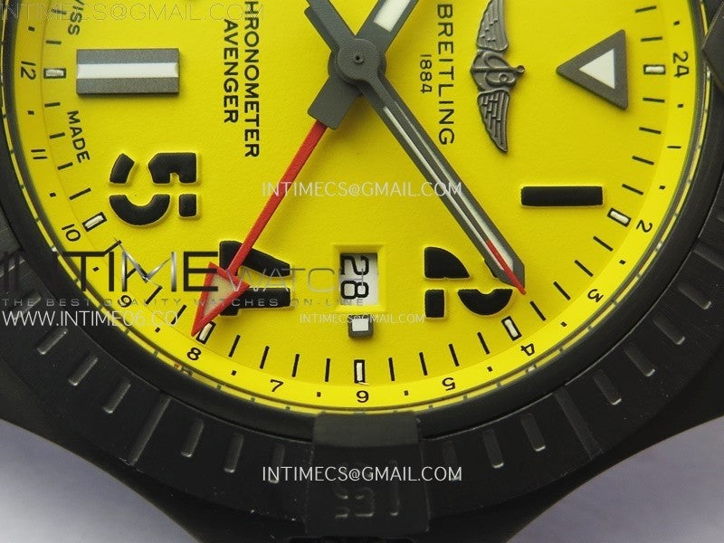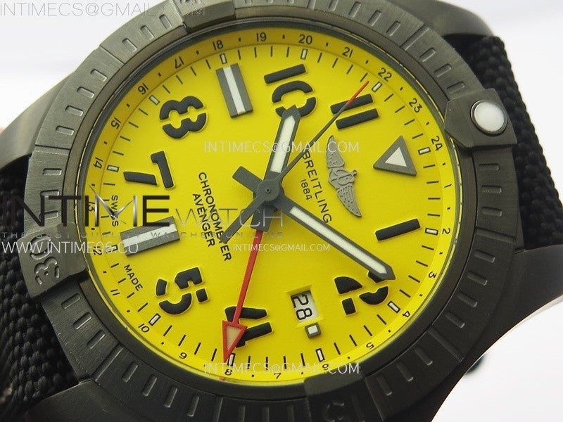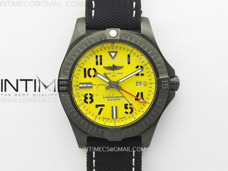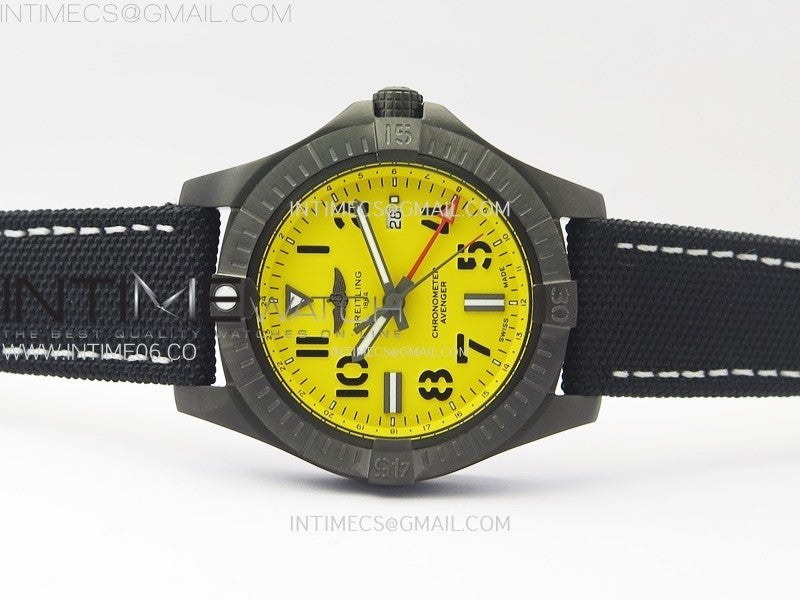 AVENGER V32395 45mm Ti DLC 1:1 Best Edition Yellow Dial on Nylon Strap A2824