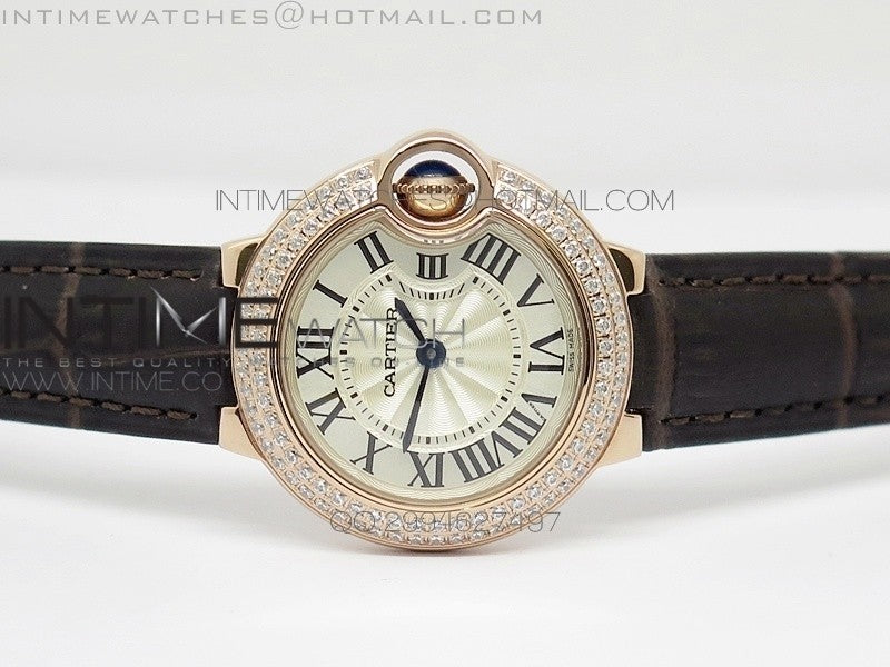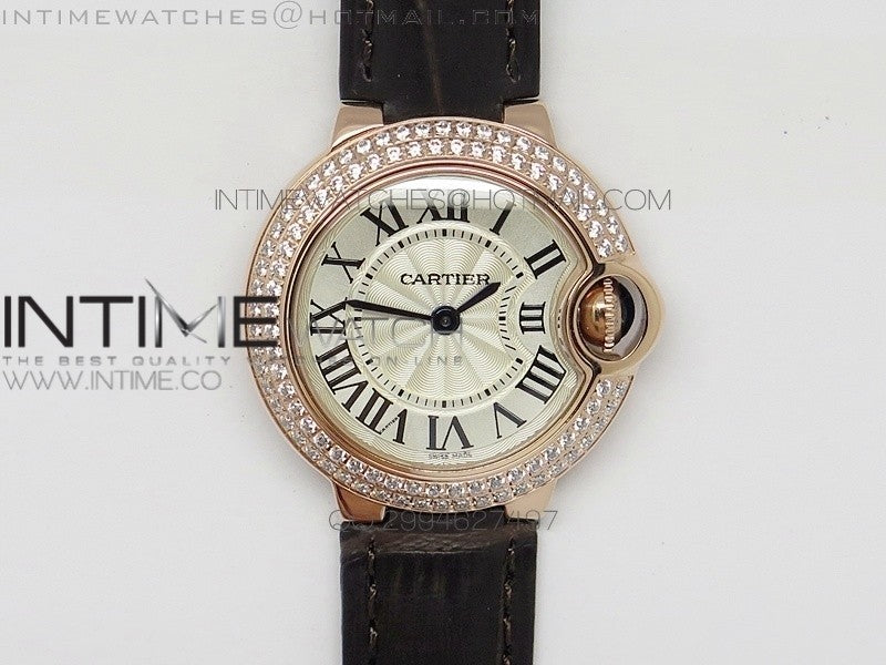 Ballon Bleu 28mm Ladies Diamind Bezel White Textured Dial on Brown Leather Ronda Quartz quantity