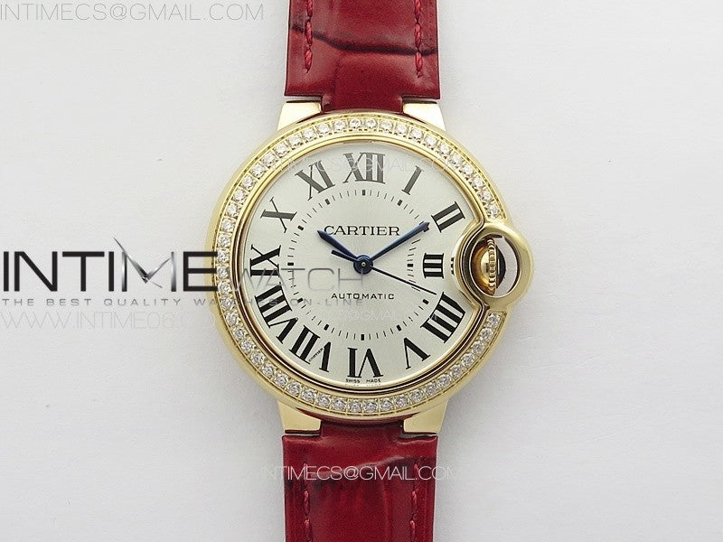 Ballon Bleu 33mm Diamonds Bezel RG K3F 1:1 Best Edition White Dial on Red Leather Strap A076 quantity