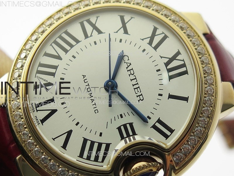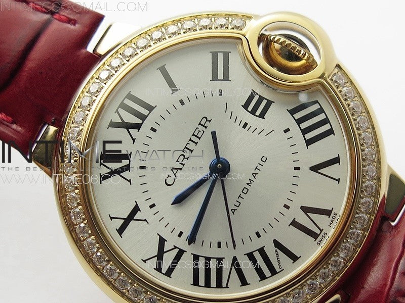 Ballon Bleu 33mm Diamonds Bezel RG K3F 1:1 Best Edition White Dial on Red Leather Strap A076