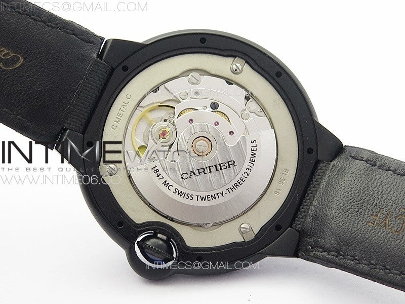 Ballon Bleu 42mm DLC K3F 1:1 Best Edition Black Texture Dial on Black Leather Strap A2824