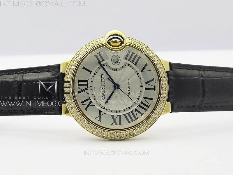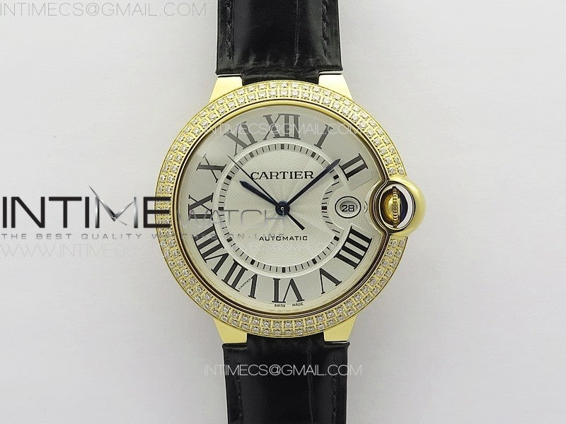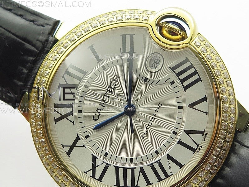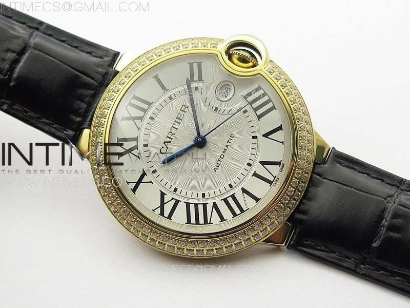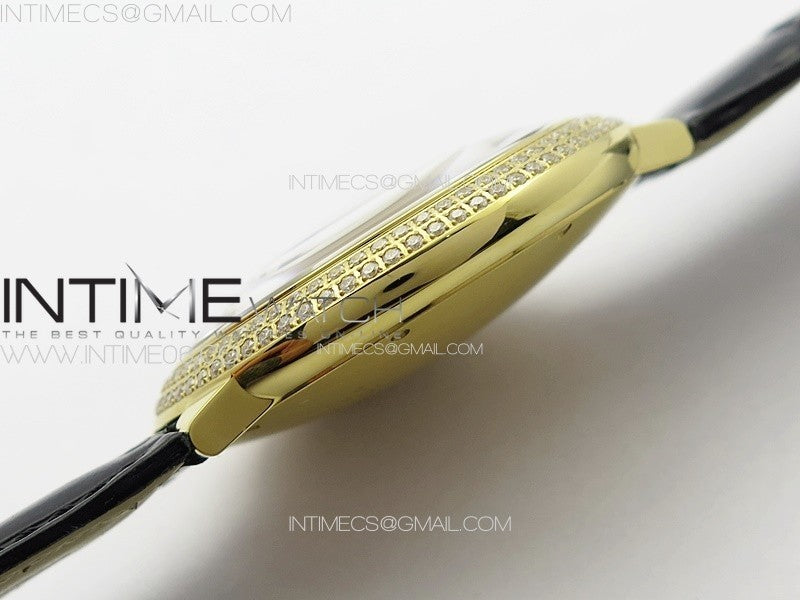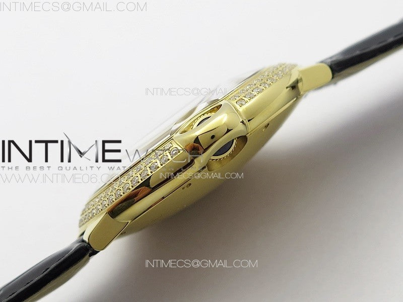 Ballon Bleu 42mm Double Diamonds Bezel RG K3F 1:1 Best Edition White Texture Dial on Black Leather Strap A2824 quantity