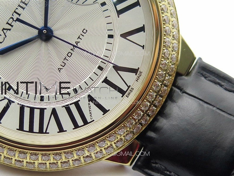 Ballon Bleu 42mm Double Diamonds Bezel RG K3F 1:1 Best Edition White Texture Dial on Black Leather Strap A2824