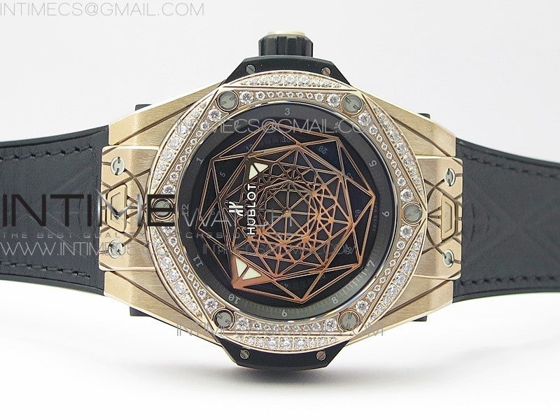 Big Bang Sang Bleu RG Ti Crystal Bezel WWF 1:1 Best Edition Black Skeletonal Dial On Black Gummy Strap Asian HB1213 V2 quantity
