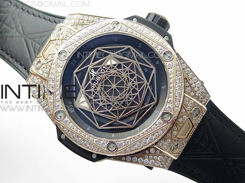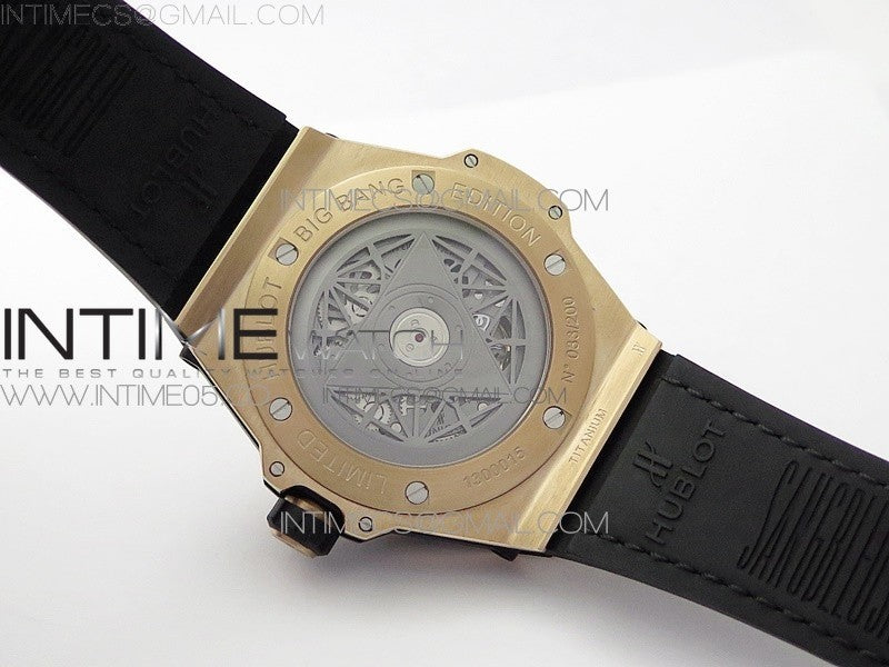 Big Bang Sang Bleu RG Ti Crystal Case Bezel WWF 1:1 Best Edition Black Skeletonal Dial On Black Gummy Strap Asian HB1213 V2 quantity