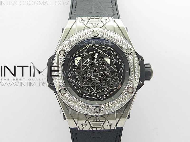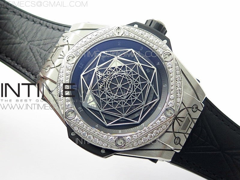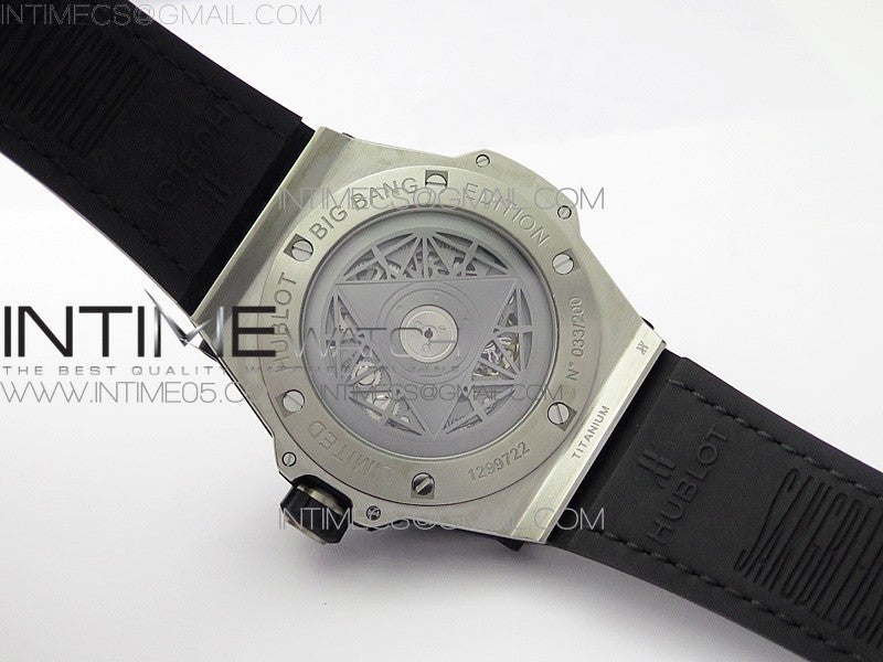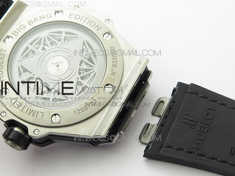 Big Bang Sang Bleu Ti Crystal Bezel WWF 1:1 Best Edition Black Skeletonal Dial On Black Gummy Strap Asian HB1213 V2 quantity