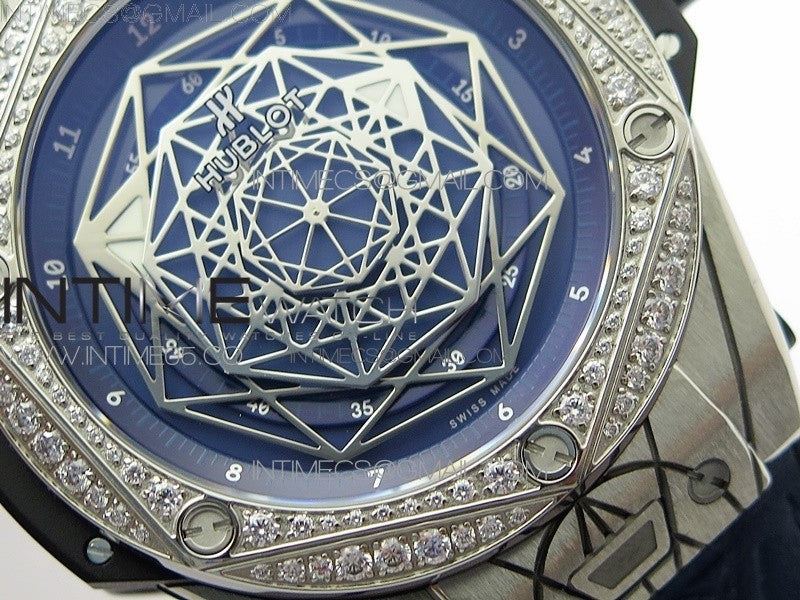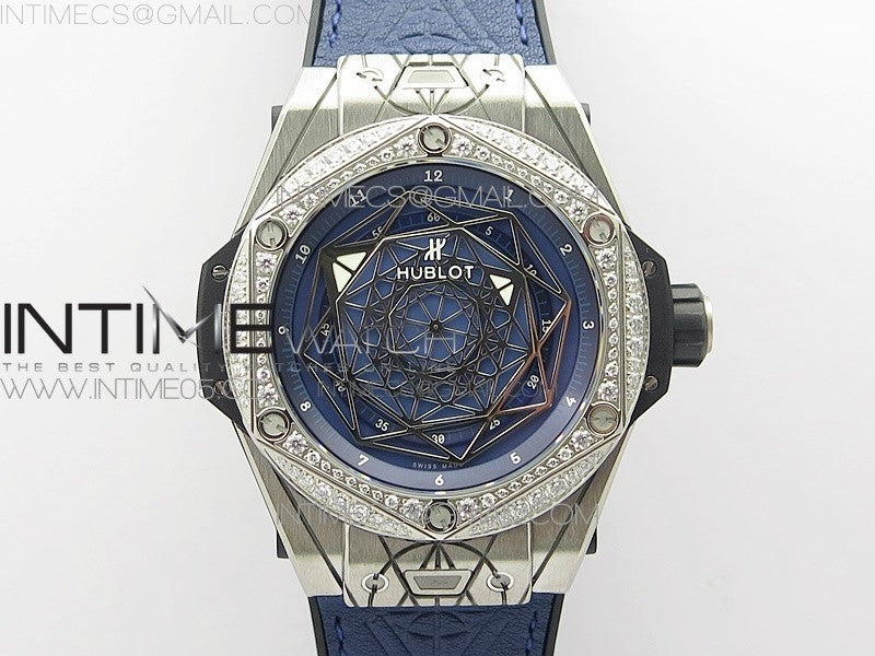Big Bang Sang Bleu Ti Crystal Bezel WWF 1:1 Best Edition Blue Skeletonal Dial On Blue Gummy Strap Asian HB1213 V2 quantity