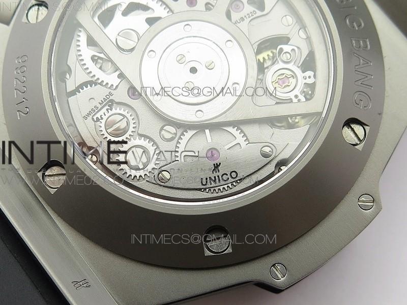 Decoration: Platinum plated movement plate and rotor which are produced according to the authentic movement, the most beautiful movement Cal.Hub1220