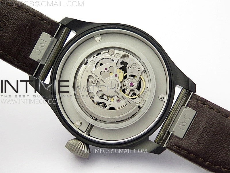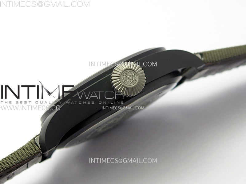 Big Pilot IW329801 Real Ceramic M+F 1:1 Best Edition Black Dial on Green Calfskin Strap SEIKO 8N-24