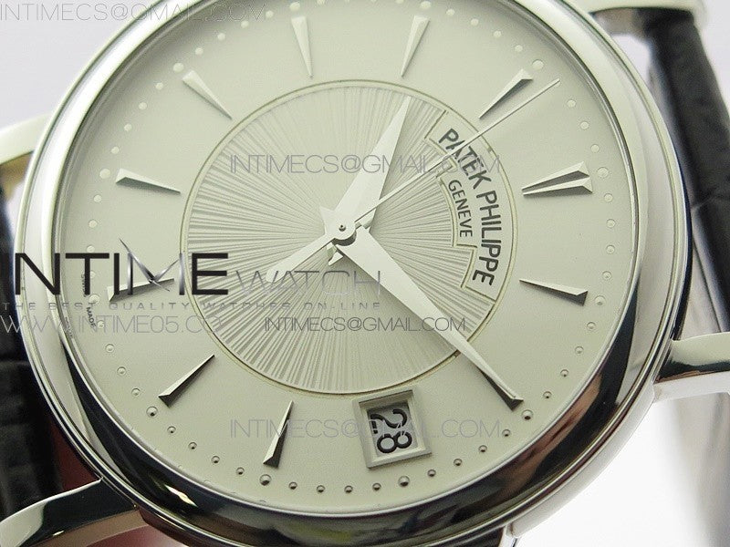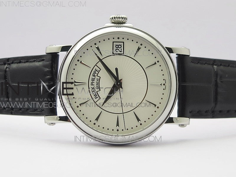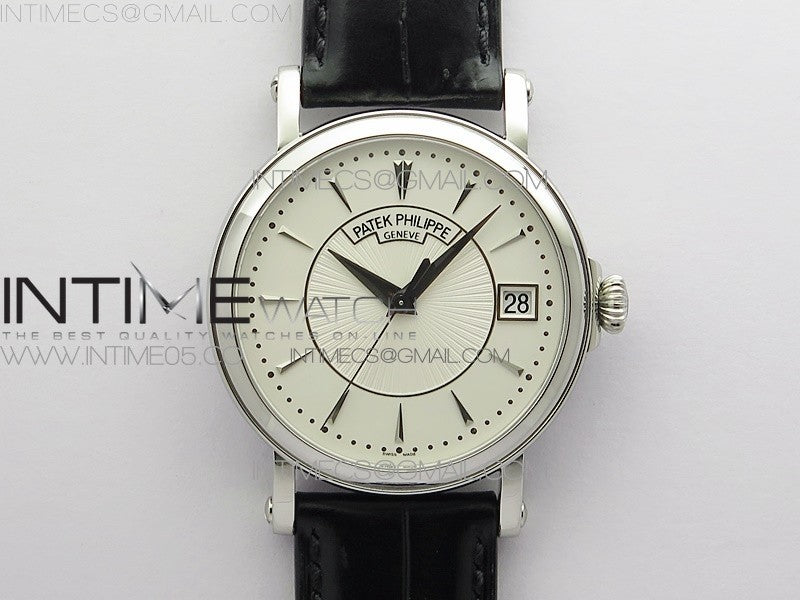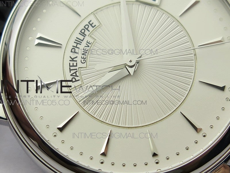 Calatrava 5153G-010 SS ZF 1:1 Best Edition White textured dial on Black Leather Strap A324CS