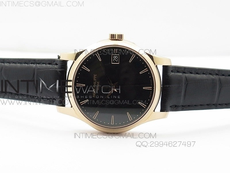 Calatrava 5227 BP Version RG Black Dial on Black Leather Strap Japanese MIYOTA 9015 PP324CS