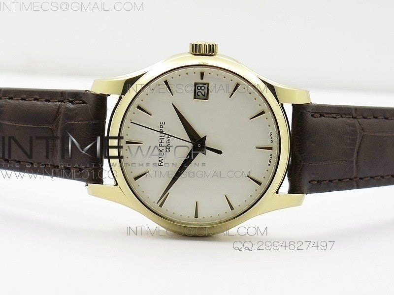 Calatrava 5227 BP Version YG White Dial on Brown Leather Strap Japanese MIYOTA 9015 PP324CS