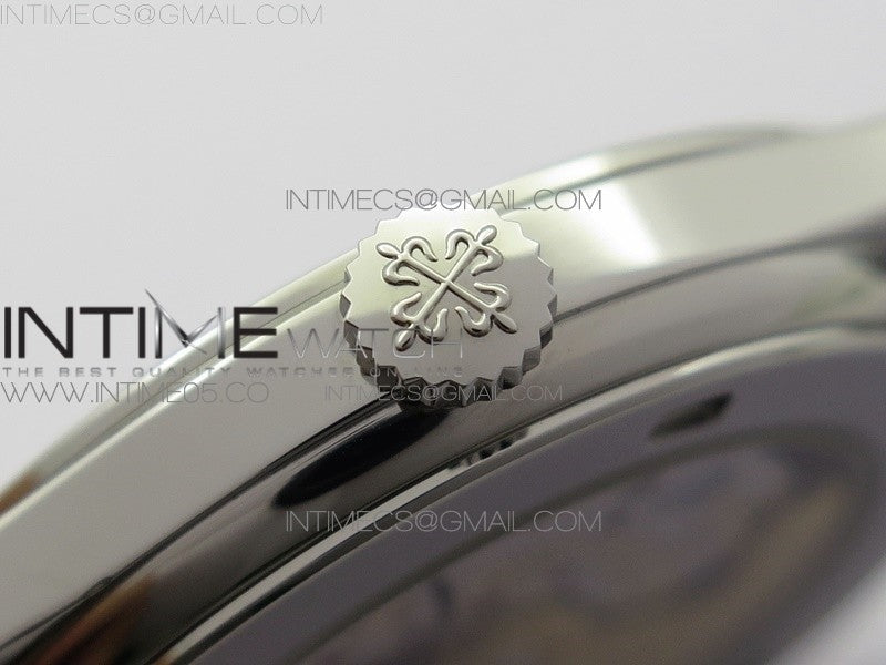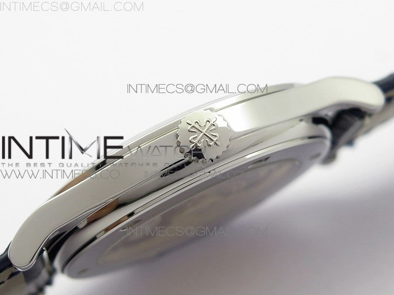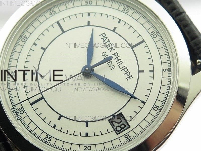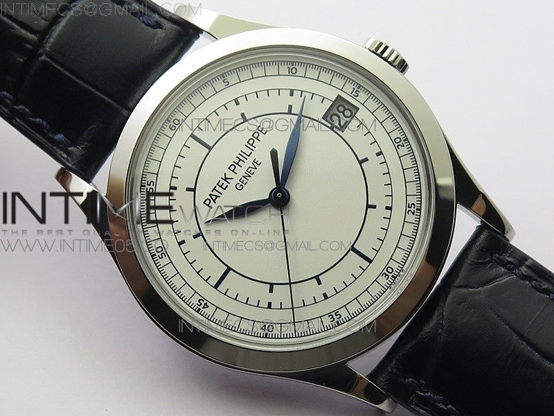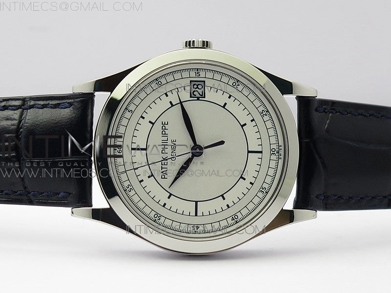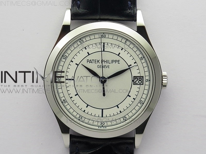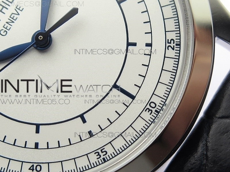 Calatrava 5296G SS ZF 1:1 Best Edition White Dial Blue Hands on Black Leather Strap 324CS