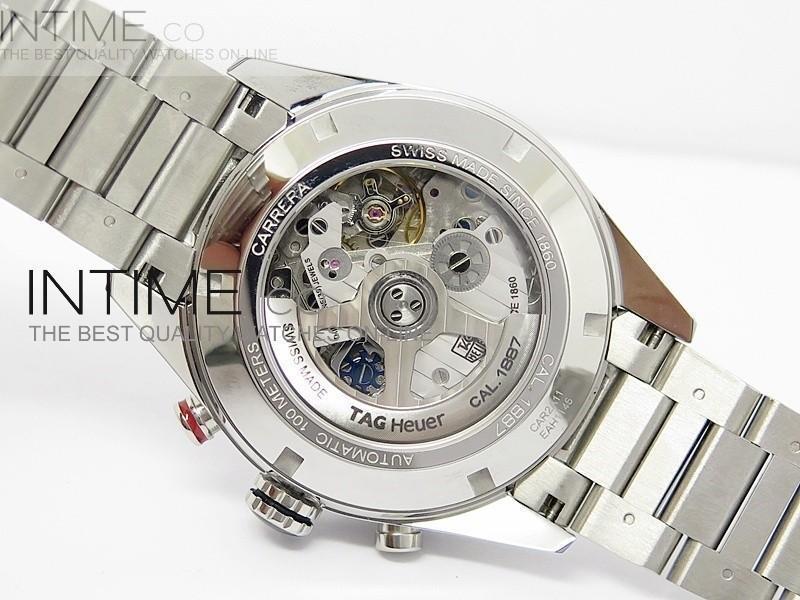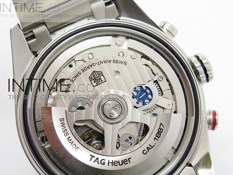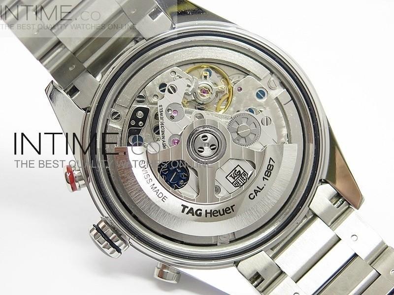 V6F New decoration: platinum-plated movement plate and rotor which are manufactured according to the authentic CAL.1887 movement, the decoration equipment moving in the same way as the authentic.