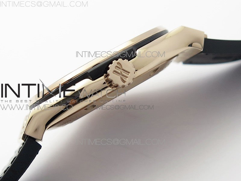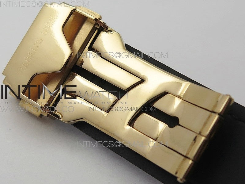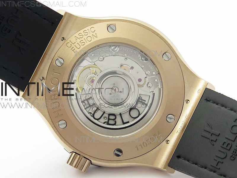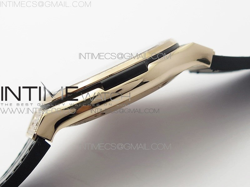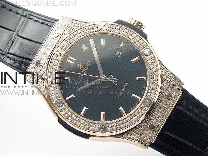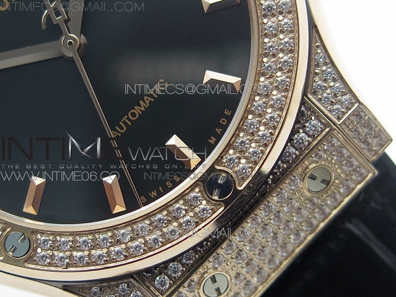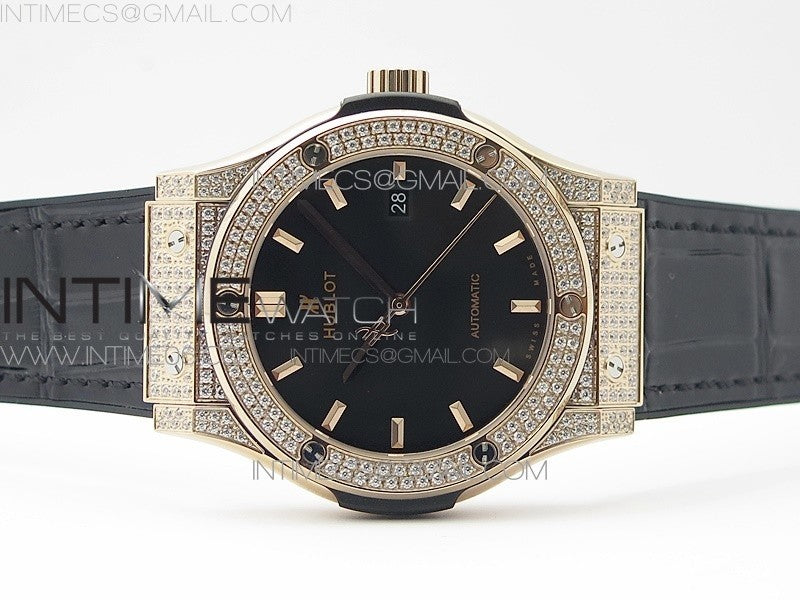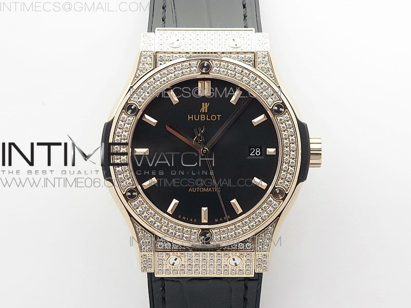 Classic Fusion 42mm RG Paved Diamonds Case/Bezel B50F Black Dial On Black Gummy Strap A2892
