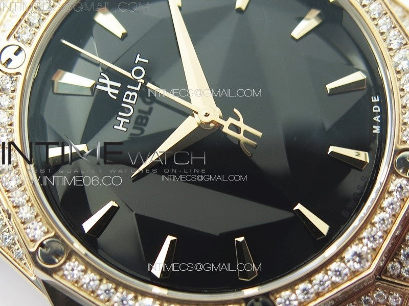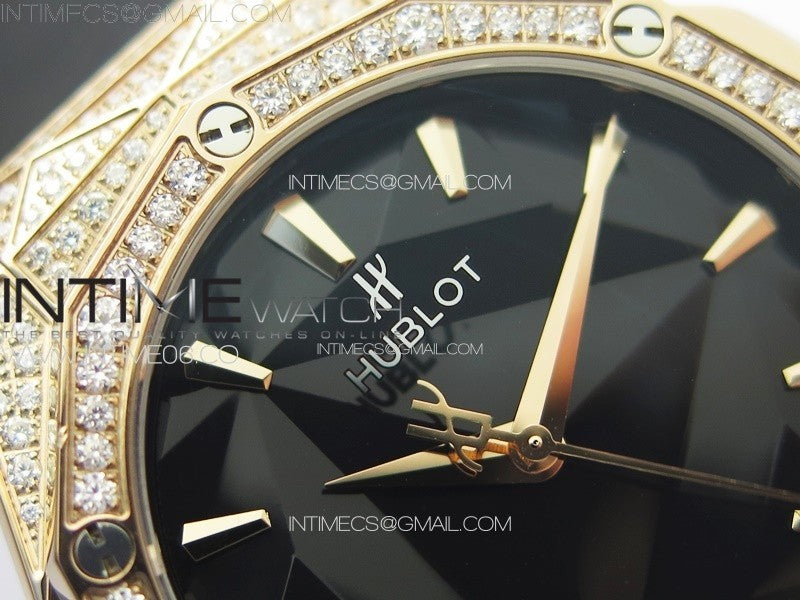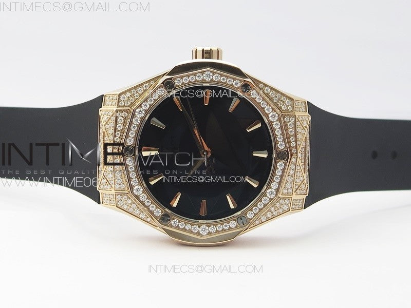 Classic Fusion Orlinski SS Full Real Diamonds RG B50F 1:1 Best Edition Black Faceted Dial on Black Rubber Strap A2892