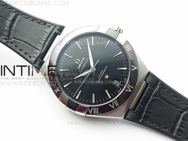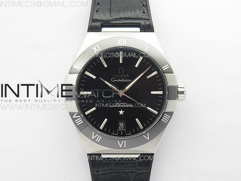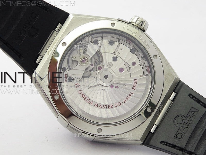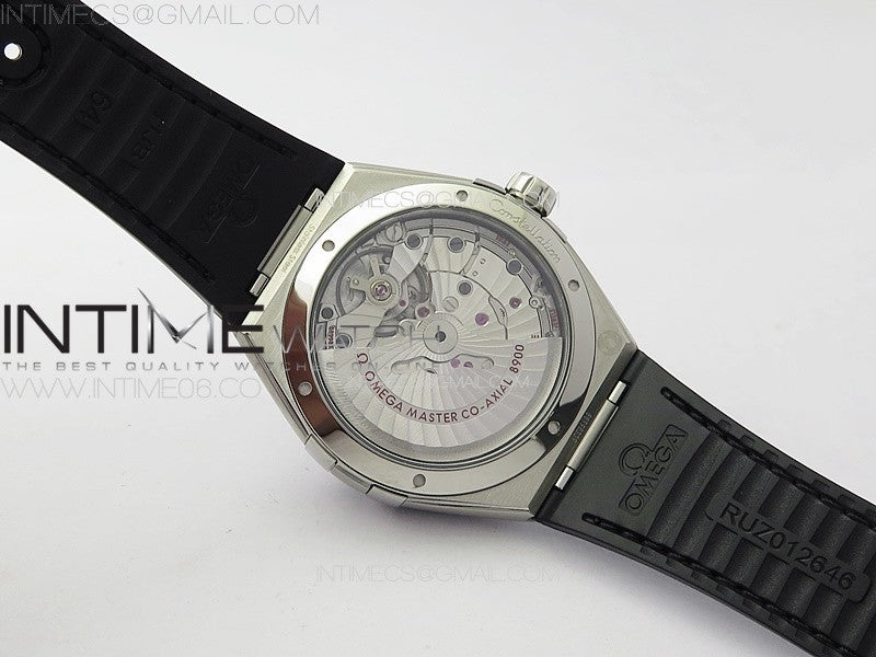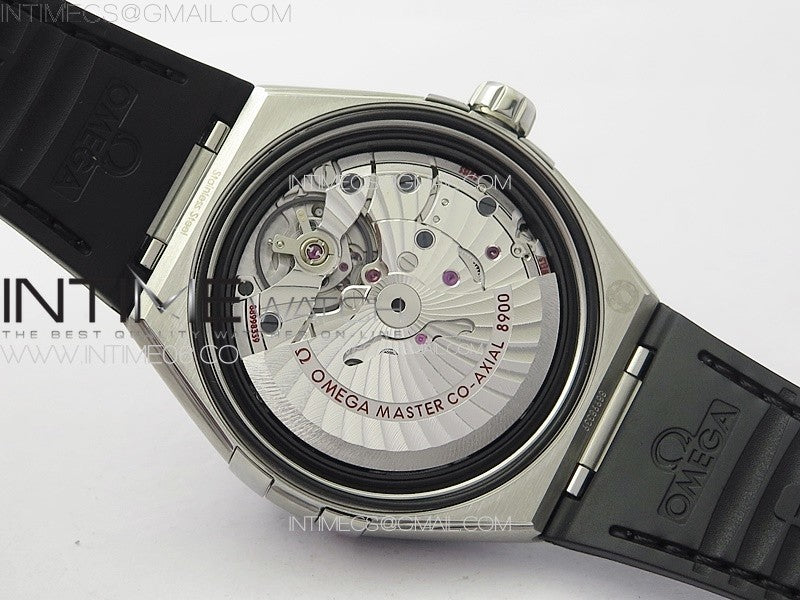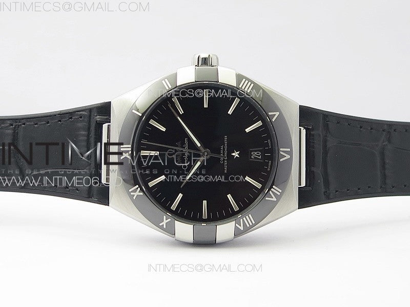 Constellation 41mm SS/Black Ceramic Bezel VSF 1:1 Best Edition Black Dial on Black Gummy Strap A8900