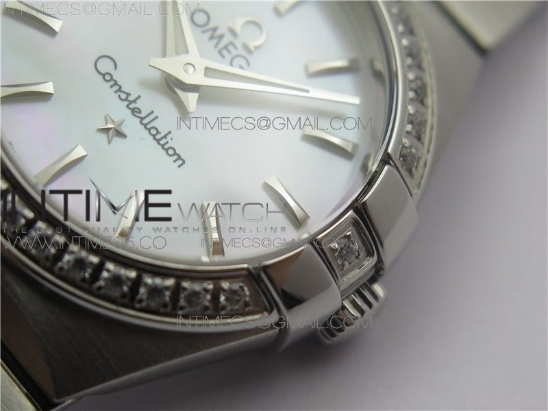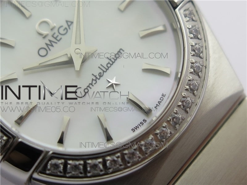 Constellation Ladies 27mm K11F 1:1 Best Edition SS Diamonds Bezel White MOP Dial Stick Markers on SS Bracelet ETA Quartz