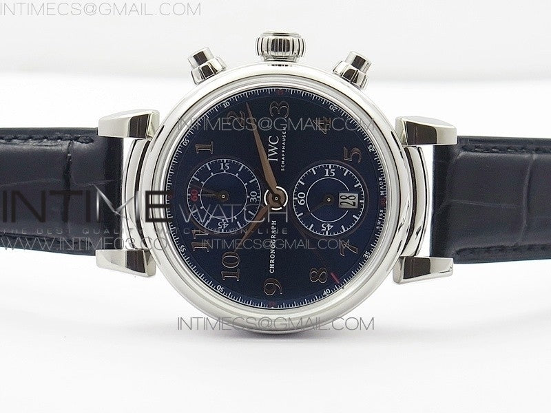 Da Vinci IW393402 SS ZF 1:1 Best Edition Blue Dial SS A7750 On Black Leather Strap