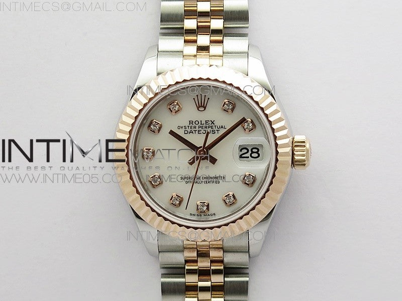 Datejust 28mm 279173 SS/RG BP Best Edition White MOP Crystal Markers Dial on SS/RG Jubilee Bracelet ETA2671