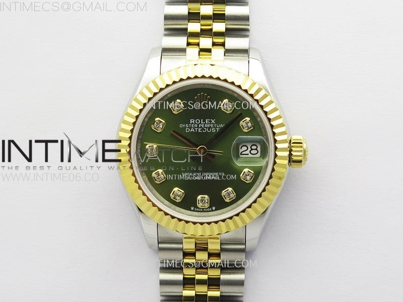 Datejust 28mm 279173 SS/YG APSF Best Edition Green Dial Crystals Markers on Jubilee Bracelet NH05