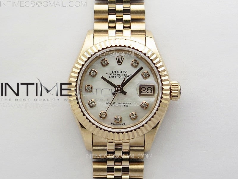 Datejust 28mm 279179 RG APSF Best Edition White MOP Dial Crystals Markers on SS Jubilee Bracelet NH05