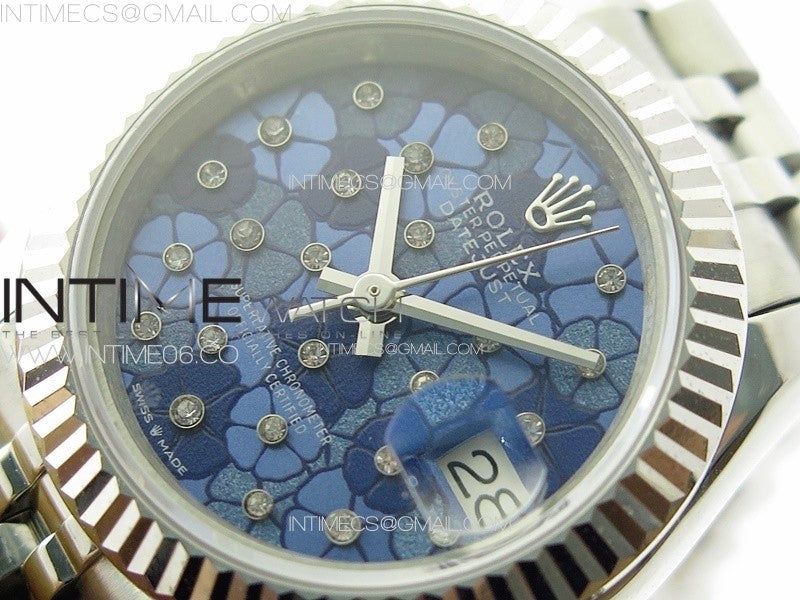 Datejust 28mm 279179 SS APSF Best Edition Blue Flowers Dial on SS Jubilee Bracelet NH05