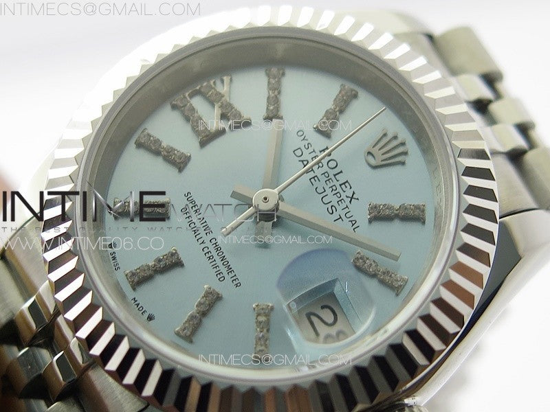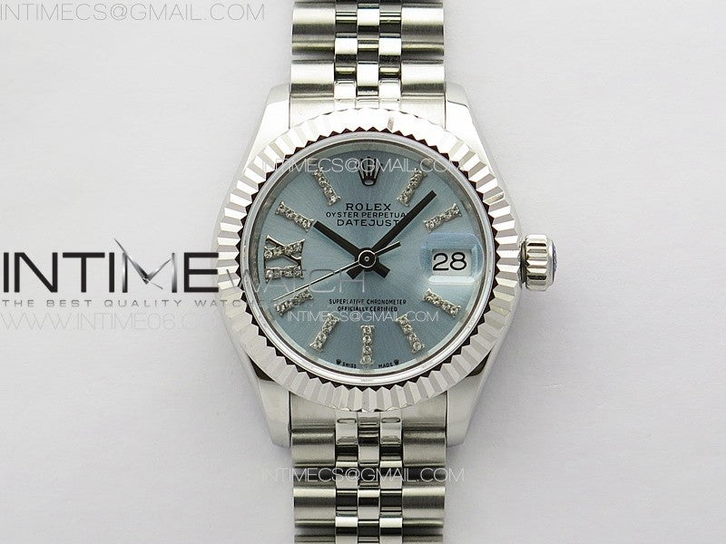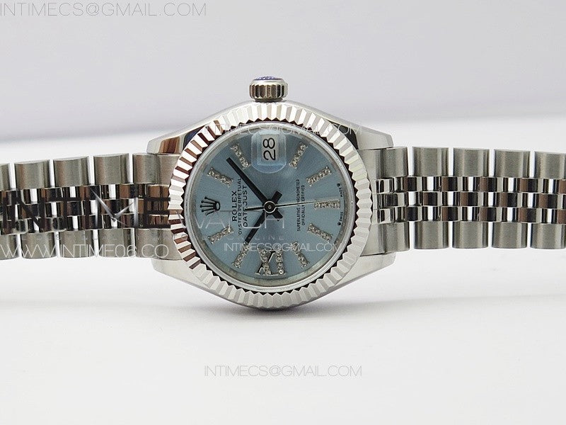 Datejust 28mm 279179 SS APSF Best Edition Ice Blue Dial Sticks Crystals Markers on SS Jubilee Bracelet NH05