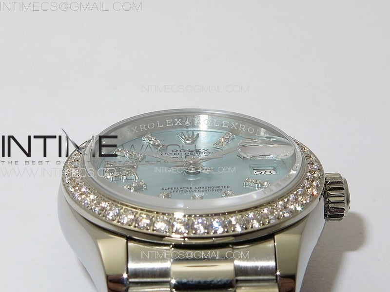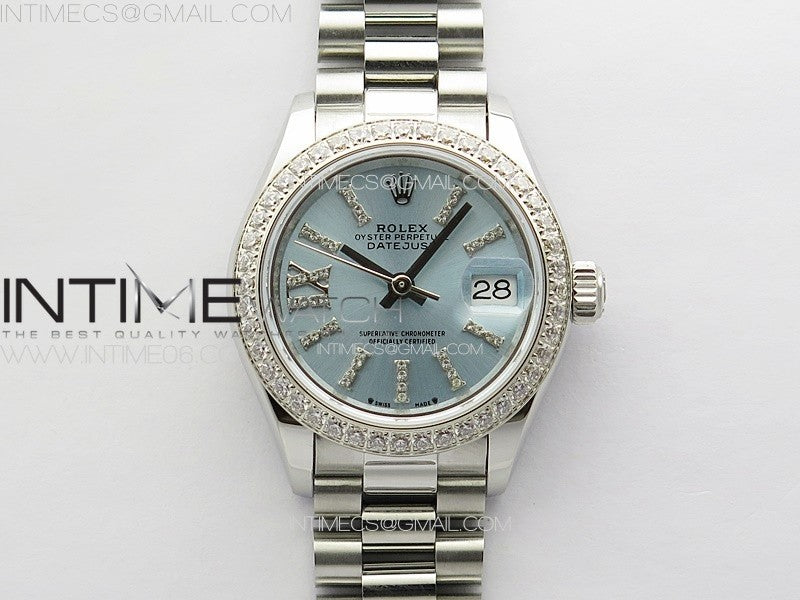 Datejust 28mm 279179 SS/Crystals APSF Best Edition Ice Blue Dial Sticks Crystals Markers on SS President Bracelet NH05