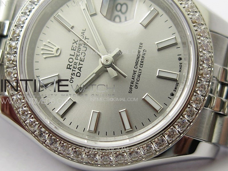 Datejust 28mm 279179 SS/Crystals APSF Best Edition Silver Dial Sticks Markers on SS Jubilee Bracelet NH05