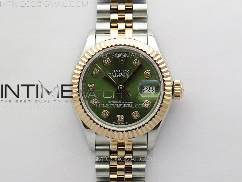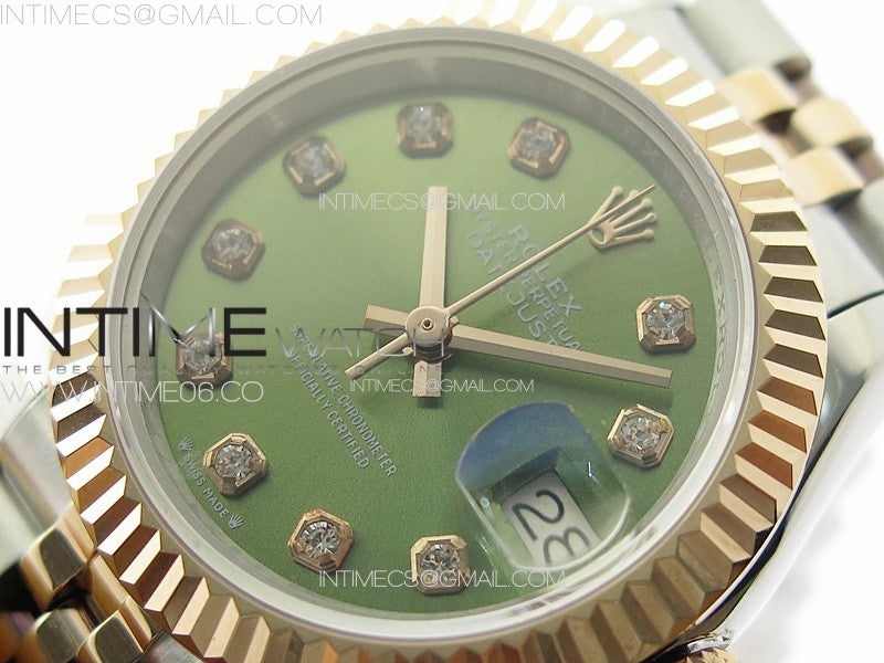 Datejust 28mm 279179 SS/RG APSF Best Edition Green Dial Crystals Markers on SS/RG Jubilee Bracelet NH05