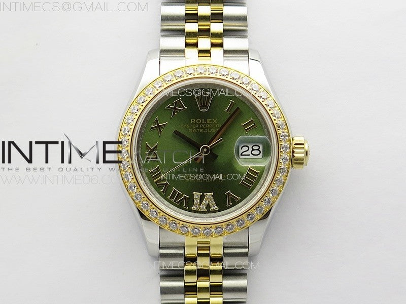 Datejust 28mm 279179 SS/YG APSF Best Edition Green Dial Roman Markers on SS/YG Jubilee Bracelet NH05