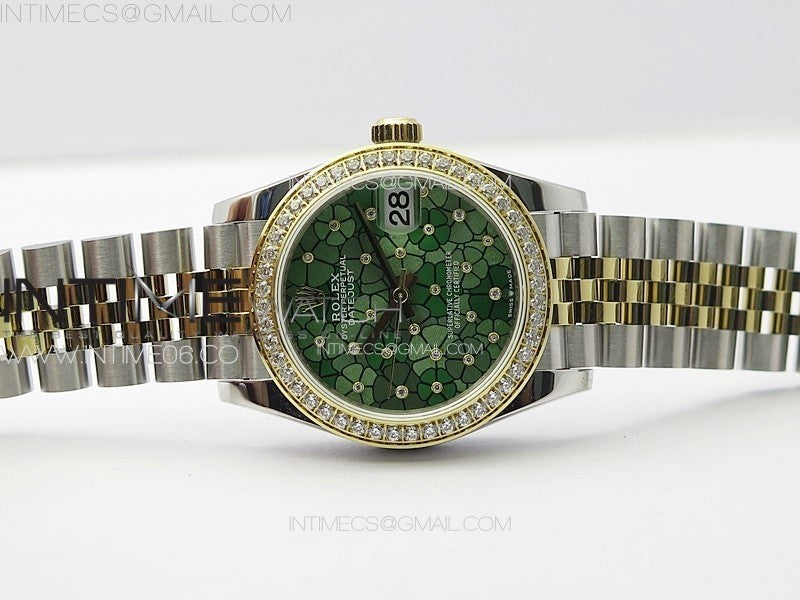 DateJust 31mm 278274 904L SS/YG Crystals Bezel GMF Best Edition Green Flowers Crystals Dial on 904L SS/YG Jubilee Bracelet A2824