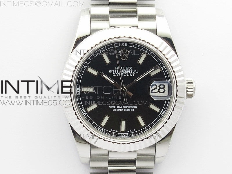 Datejust 31mm 278275 SS BP Best Edition Black Stick Markers Dial on SS President Bracelet