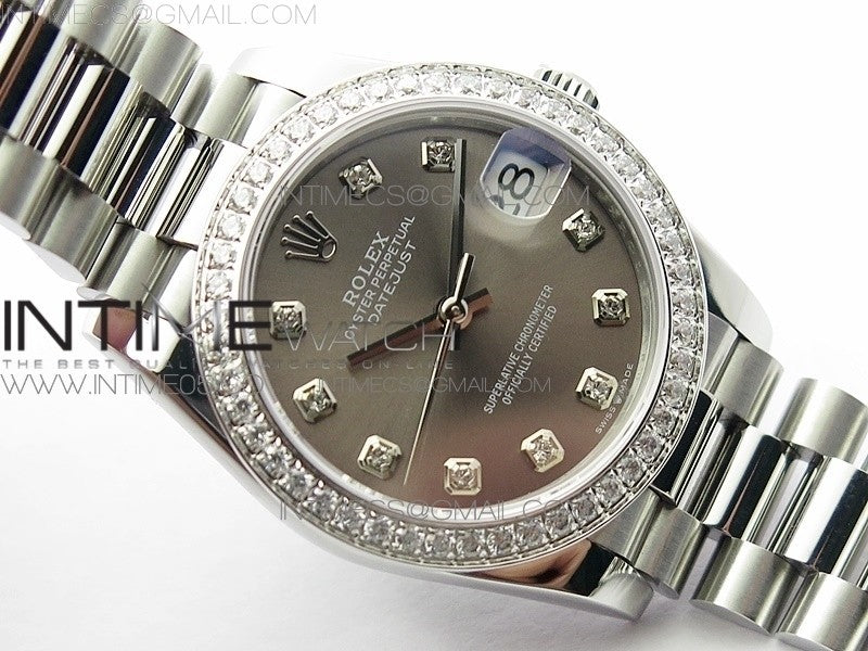 Datejust 31mm 278275 SS Crystal bezel BP Best Edition Gray Dial(@6 Crystal Marker) on SS President Bracelet