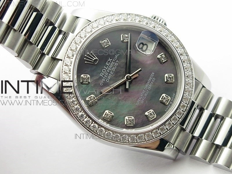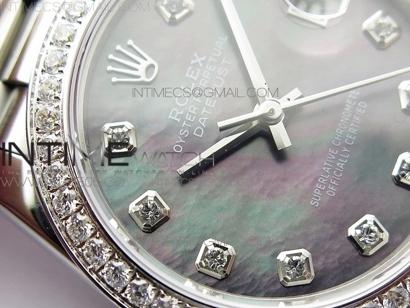 Datejust 31mm 278275 SS Crystal bezel BP Best Edition Gray MOP Dial(@6 Crystal Marker) on SS President Bracelet