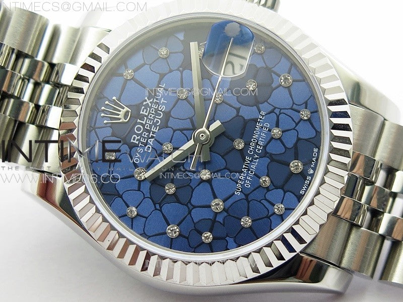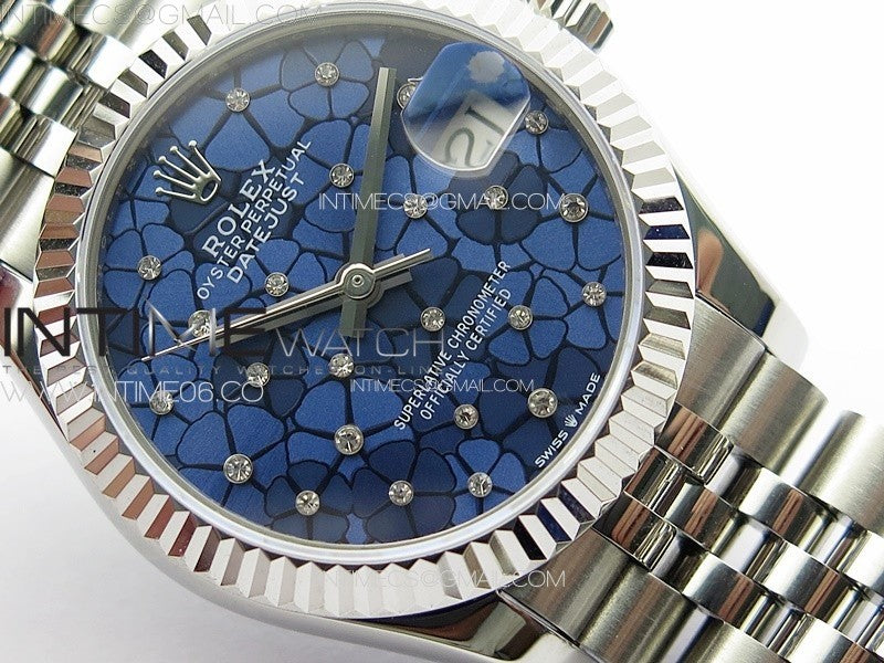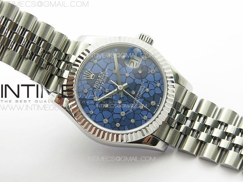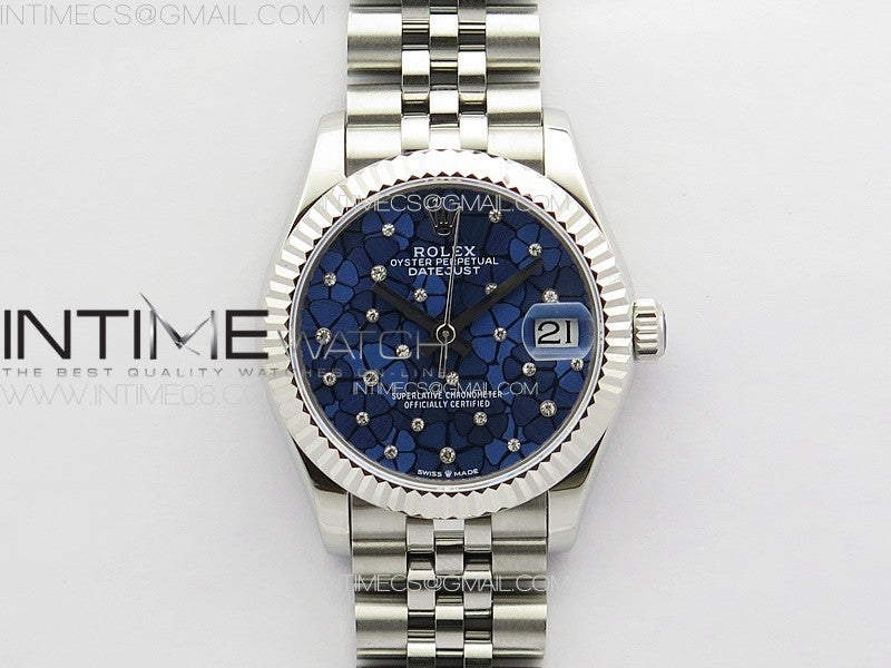 DateJust 31mm 72610 SS APSF Best Edition Blue Flowers Crystals Dial on Jubilee Bracelet A2824