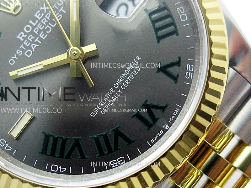 DateJust 36 SS 126233 904L SS/YG VSF 1:1 Best Edition Gray Dial Green Roman Markers on Jubilee Bracelet VS3235