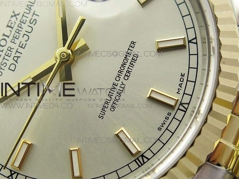 Bezel Fluted bezel in 18k yellow gold-plated stainless steel, same authentic shape 904L stainless steel bracelet with rolex jubilee bracelet with perfect SEL, 18 kt yellow gold plated central links, smooth clasp and screws (the best Rolex bracelet EVER)