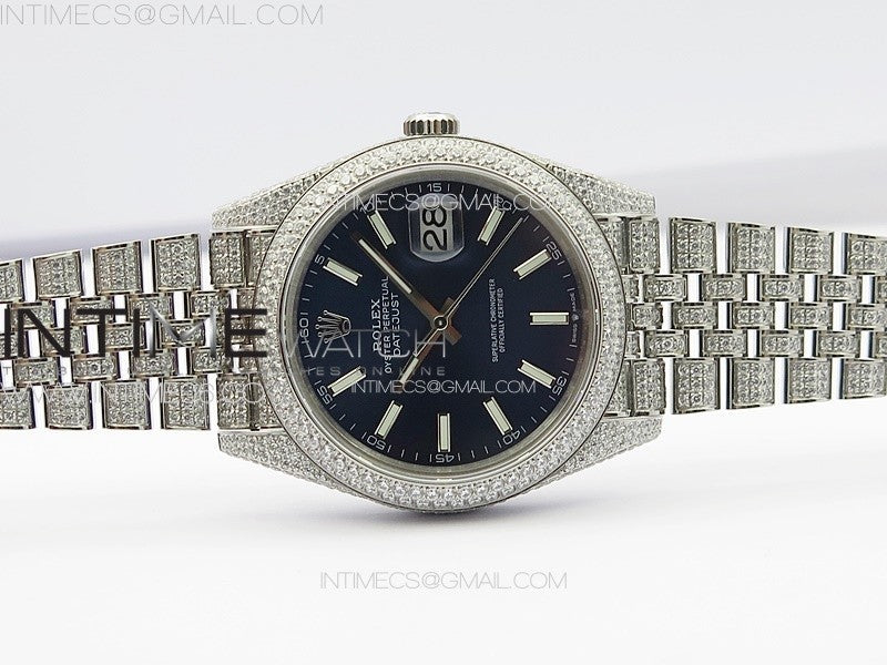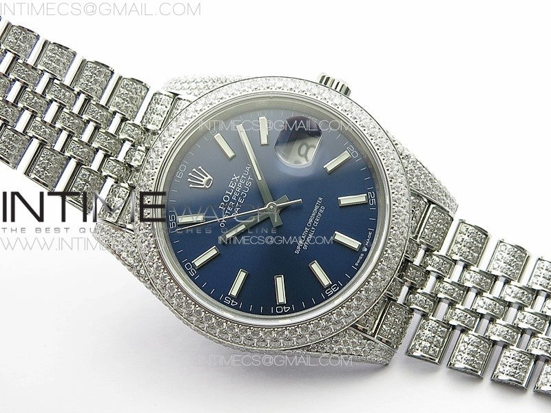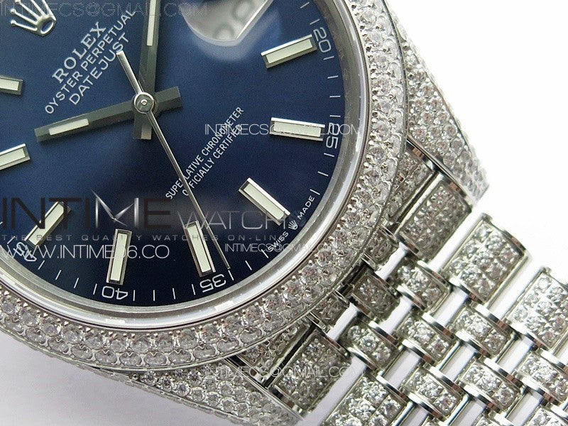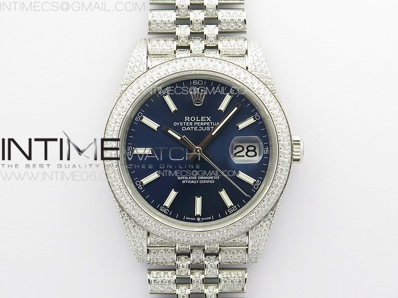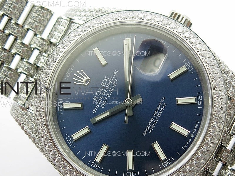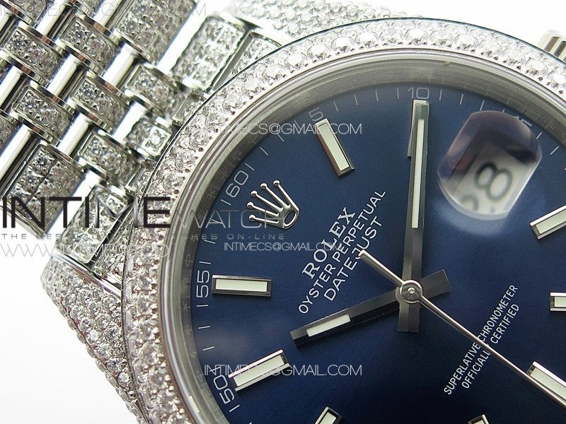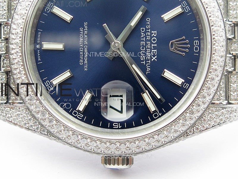 DateJust 41 126334 Full Paved Diamonds BP Best Edition Blue Dial Sticks Markers on Jubilee Bracelet A2824