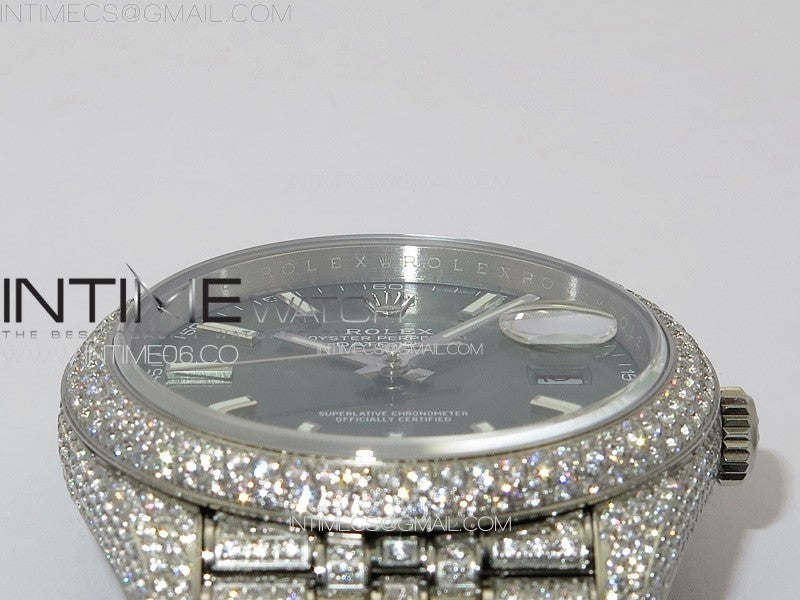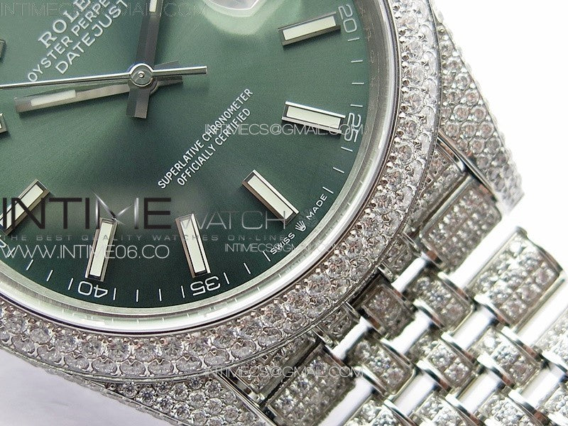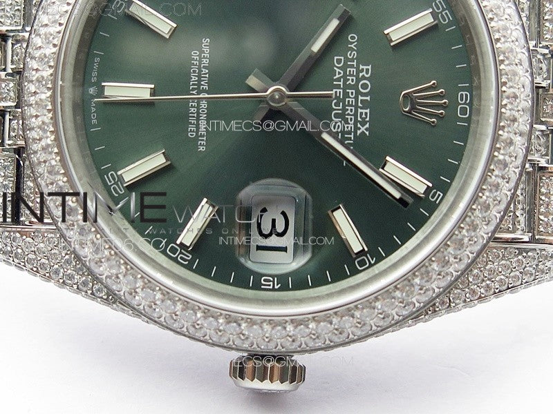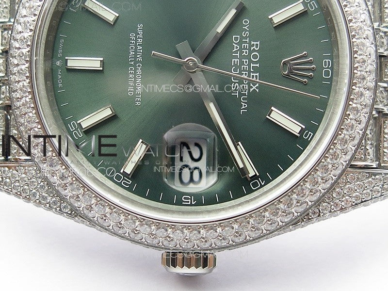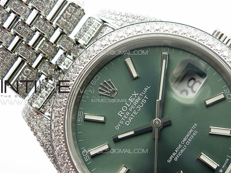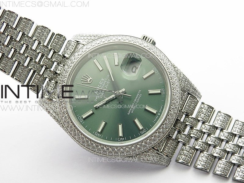 DateJust 41 126334 Full Paved Diamonds BP Best Edition Green Dial Sticks Markers on Jubilee Bracelet A2824