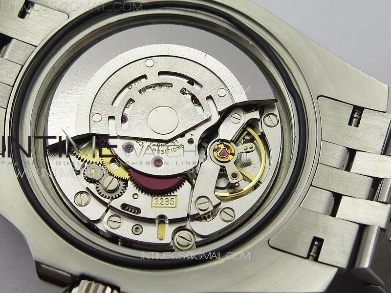 Movement Asian Super Clone 3285 Automatic Movement at 28800 vph, Correct Handstack, self-winding, independent adjustable hour hand to set the date, same setting as genuine. Stable. VR3285