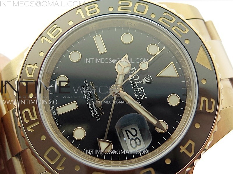 Movement Asian Super Clone VR 3285 Automatic Movement at 28800 vph, Correct Handstack, self-winding, independent adjustable hour hand to set the date, same adjusting as genuine