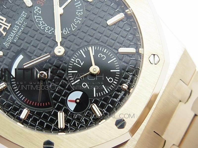 Dial: 18K rose gold plated Black textured dial